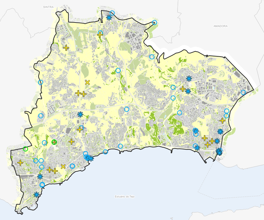 Os pontos críticos de limpeza resultam de ocorrências (deposição indevida, entulho, estacionamento, má utilização de equipamento, monos, verdes) reportadas aos serviços de limpeza do município. Estes asseguram diariamente a limpeza e higiene urbana de modo a diminuir os riscos ambientais e de saúde pública nos espaços públicos do concelho de Oeiras. Elaborado com recurso aos ortofoto e à cartografia topográfica de 2010, homologada em 2012 à escala 1:2 000.